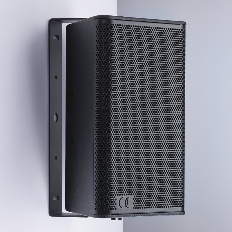 The cabinet is made of plywood coated with polyurea paint, in black. It includes a protective metal grille and is compatible with a wide range of optional mounting systems and wall brackets.
