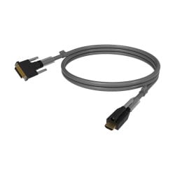 The hybrid fibre optic cable with 4 glass fibres and 8 copper wires enables interference-free transmission of high data rates even over very long distances. For this purpose, the electrical signal in the "Source" connector is converted into light pulses, which are transmitted via the optical fibres to the "Display" connector, where they are converted back into an electrical signal. It is therefore important that the installation direction of the cable is correct.