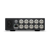 Le système dispose de quatre entrées 12G-SDI avec des sorties en boucle pour chacune d'entre elles et de deux sorties 12G-SDI dédiées. Le panneau avant comporte six boutons dédiés aux entrées et sorties ; si un périphérique externe doit être connecté en urgence, les connexions avant peuvent également être utilisées, qui comprennent une entrée 12G-SDI d'urgence et une sortie webcam USB-C.
