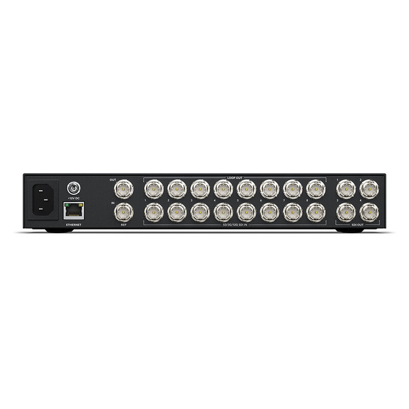 Il possède huit entrées 12G-SDI avec des sorties en boucle pour chacune d'entre elles et quatre sorties 12G-SDI dédiées. Le panneau avant comporte douze boutons dédiés aux entrées et sorties ; si un périphérique externe doit être connecté en urgence, les connexions avant peuvent également être utilisées, qui comprennent une entrée 12G-SDI d'urgence, une sortie webcam USB-C et une sortie 12G-SDI.